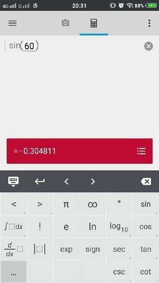在Photomath的计算键盘上,能看到它可以实现的多种运算。