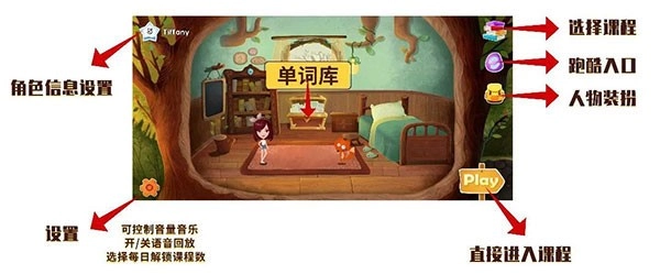宝宝能借助操控右下方的按钮来控制小人移动,在跑酷过程中进一步加强单词记忆和跟读练习。