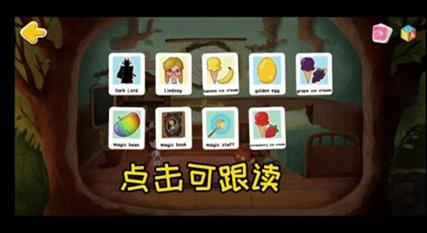 宝箱里存放着已学过的单词卡,打开后能点击单词卡反复开展听读练习。