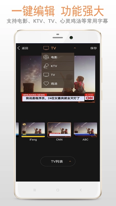 支持电影、KTV、TV、心灵鸡汤等4种不同风格的字幕;每种字幕都有其独特之处,能够适配不同的场景与需求,让你的图片更富表现力和感染力。