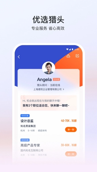 猎头服务:可直接对接数万名专业猎头顾问,获取高薪职位推荐,还能得到职业规划方面的建议。