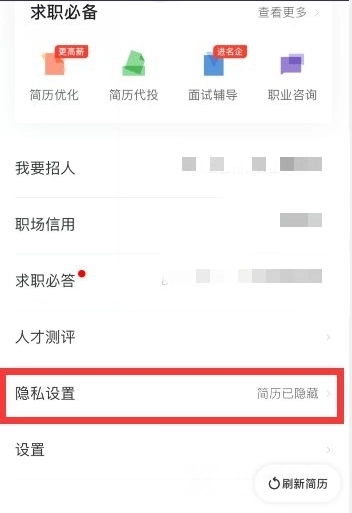 点击下面的求职隐私选项。