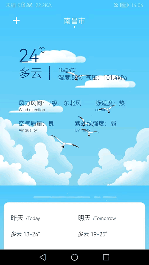 在天气预报页面滑动屏幕,就能查看自己所在城市的天气状况了。