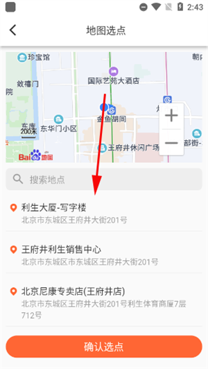 若用户定位不够精准,可点击进入地图,详细选择最准确的地理位置或附近的建筑地址。