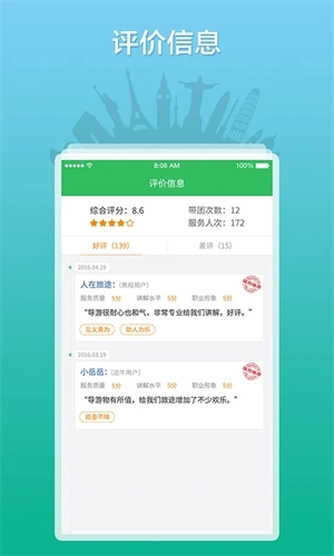 在全国导游之家平台上,用户可以查看导游的个人简历,其基本信息均可通过软件进行查询,无需担心所选导游存在问题;同时,软件还展示了导游在自由执业企业承接的全部订单,便于用户在空闲时段预订行程,避免出现时间冲突。