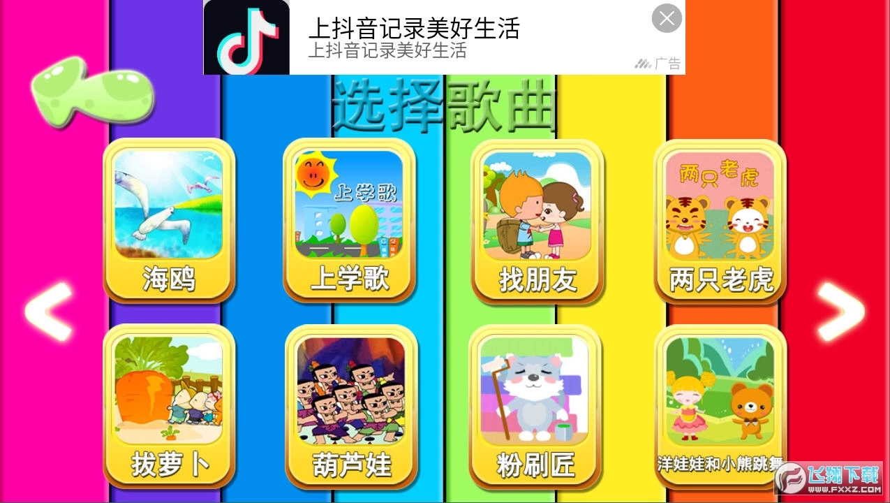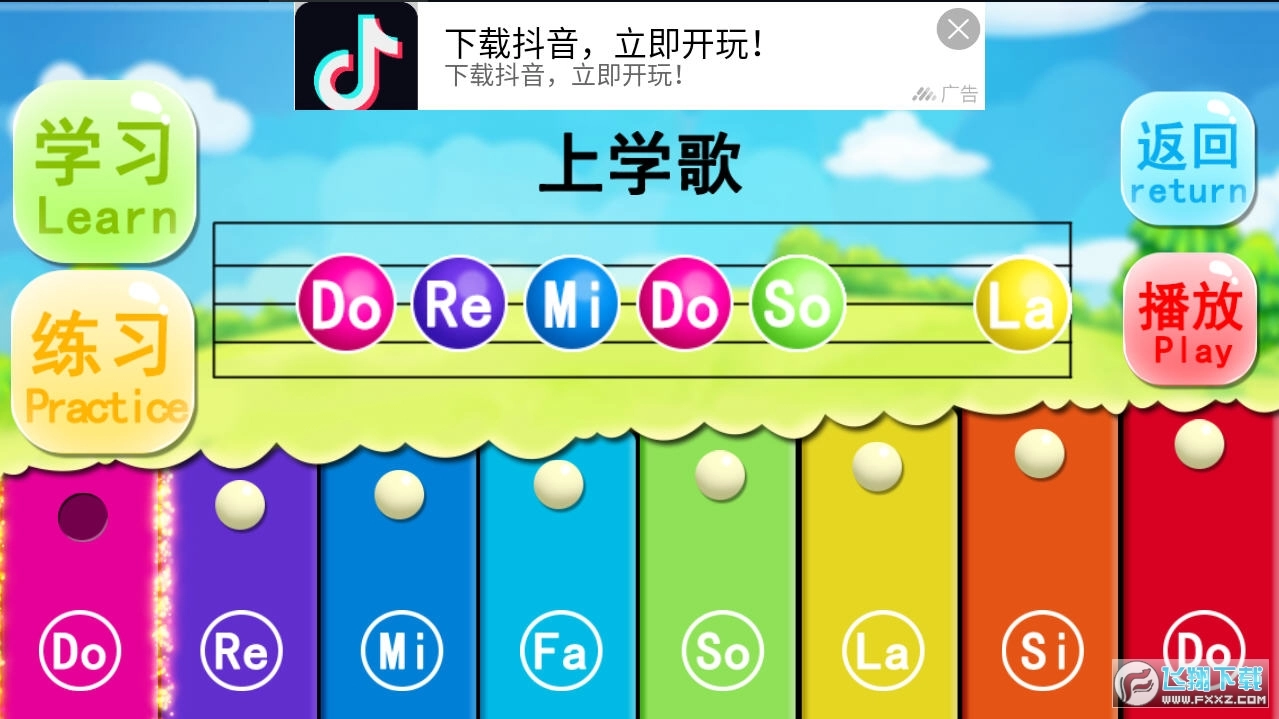 这款儿童早教软件主要包含“练习歌曲”与“自由弹奏”两大板块。