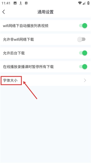 进入【通用设置】页面后,可找到【字体大小】选项,点击该选项就能对字体大小进行调整。