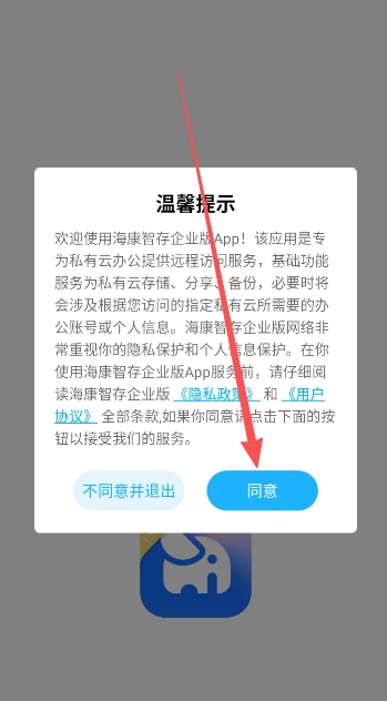 打开您在本站下载好的软件客户端,仔细阅读完整的用户协议与服务政策内容,确认无误后点击同意按钮即可进入。