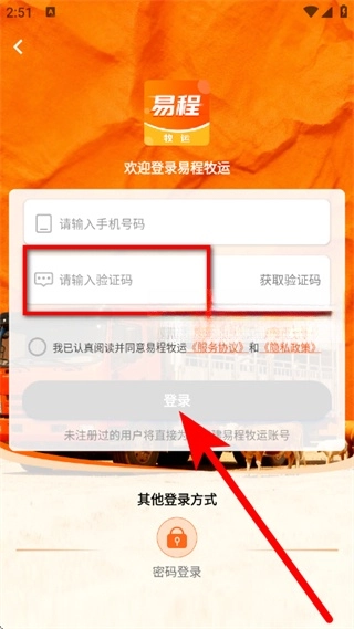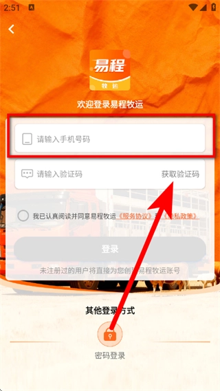 在首页,点击底部的“我的”选项,即可进入“欢迎登录易程牧运”的登录页面。