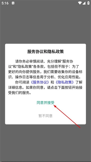 在服务协议与隐私政策的弹窗里,点击同意按钮,即可进入登录界面。