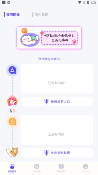 打开软件后点击“逗宠语言”功能,就能用它和你的宠物互动娱乐、逗弄玩耍啦。