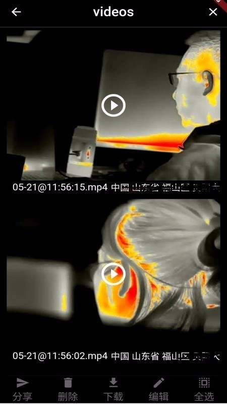InfiRayOutdoor最新版本配备了功能丰富的录像工具条,具备分享、删除、编辑等实用功能。