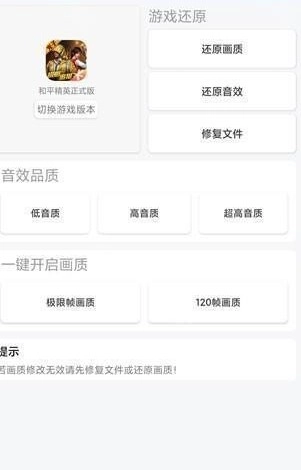 在【画质助手】页面,你可以点击【切换游戏版本】来更换游戏版本,也能够根据自己的需求选择【还原画质】【还原音效】【修复文件】等功能选项进行操作。