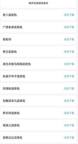 可以看到的语音包有老八语音包、广西老表语音包、混元太极马保国语音包、罗志祥语音包等。