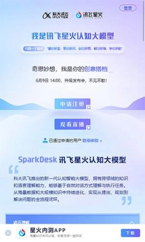 一共有两种申请途径,第一种是先访问讯飞星火版的网站,进入后点击申请注册的按钮。