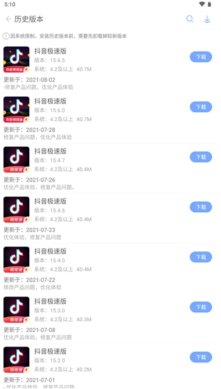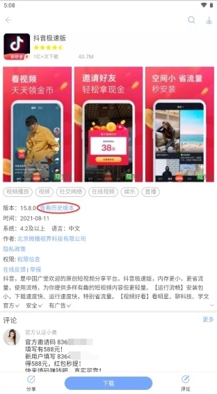 进入后选择所需的历史版本,在详情页点击安装即可。