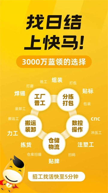 快马日结是一款以工资日结为核心的手机招工应用,平台上大量岗位提供日结薪资,附近的工作机会可随时抢单,无需担忧完工后薪资拖欠等问题;若您有招工需求,也能直接在平台发布信息。此外,快马日结配备实时通讯功能,有效提升了招聘与服务的效率,便于工人和企业随时进行沟通,尤其适合临时用工人群。