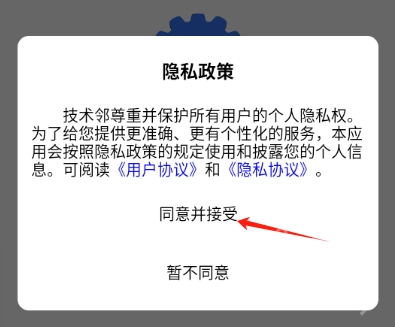 安装技术邻,后打开技术邻,点击同意并接受
