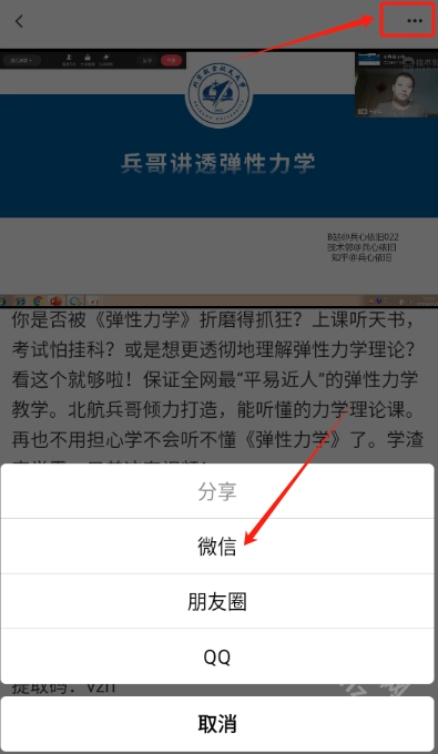 如果没有提供直接获取视频的方式,我们可以点击视频右上角的【...】按钮,选择分享至微信,再通过第三方视频提取软件完成视频的提取操作。