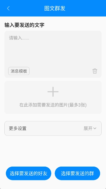 - 支持向个人或群组群发消息,能够发送图片、表情等内容。