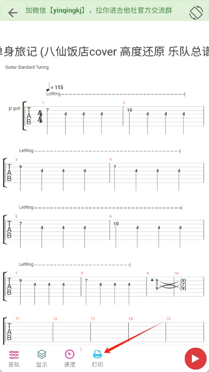 在乐谱的详情页面中点击左下角的“打印”按钮。