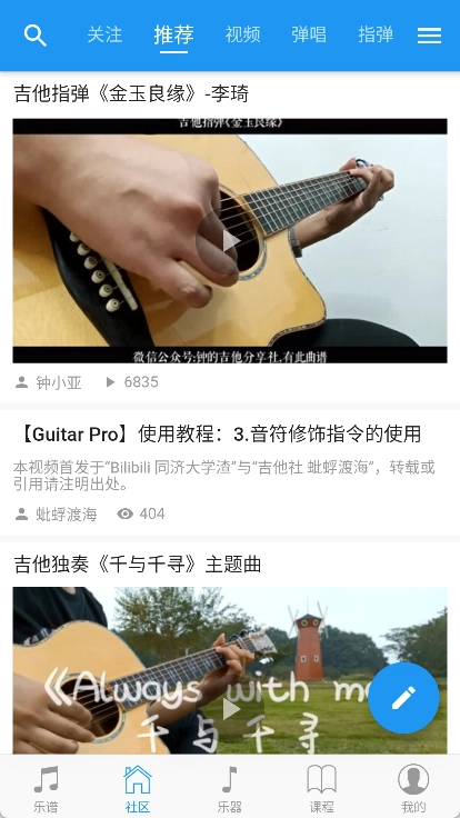 吉他社是一款学习资源十分丰富的吉他学习交流软件,能让我们随时随地利用空闲时间学习吉他。在吉他社安卓版里,收录了海量吉他曲谱,包含指弹、弹唱、电吉他谱等多种类型,我们可以根据歌曲或歌手快速搜索,找到自己想学的曲谱。而且曲谱支持五线谱和六线谱切换显示,要是学不会还能查看视频教学资源,看完后可以用评测功能检验学习成果,实在有困难还能在社区里互动交流!