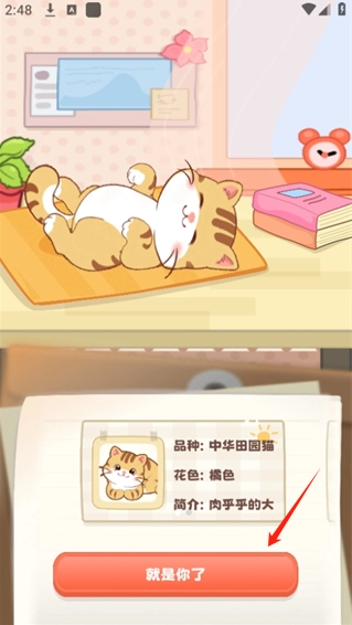 登录之后,挑选你想领养的猫咪,然后点击“就是你了”这个按钮。