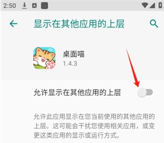 你可以在设置里找到并开启“允许显示在其他应用上层”这个选项。