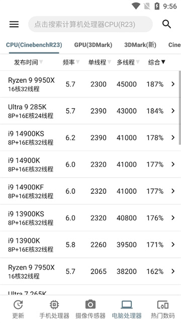 查看最新的手机CPU单核分数、多核分数、GPU分数以及总分。