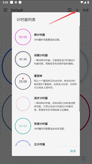 添加计时器的操作很简单:直接点击界面上的“+”号按钮,此时会弹出计时器列表,从中选择你需要添加的计时器就完成了。