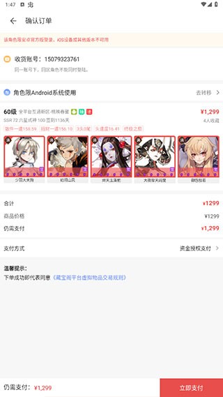 收费规则:例子:卖方以1200、3元出售一个角色。买方不收取任何信息交易费”支付1200、3元即可。