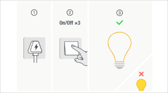 照明设备可以反复进行三次开关操作。其他设备则需长按复位键五秒钟。当指示灯闪烁时,即表明设备已进入配网模式。