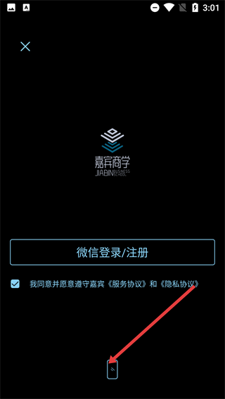 进入登录页面后,勾选同意【服务协议】与【隐私协议】,即可选择【微信登录/注册】等登录方式。