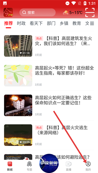 进入界面后,你可以借助【搜索】功能查找所需内容,也能浏览【推荐】【时政】【看天下】等标签下的各类资讯,点击底部的【我的】选项就能进入个人相关页面。