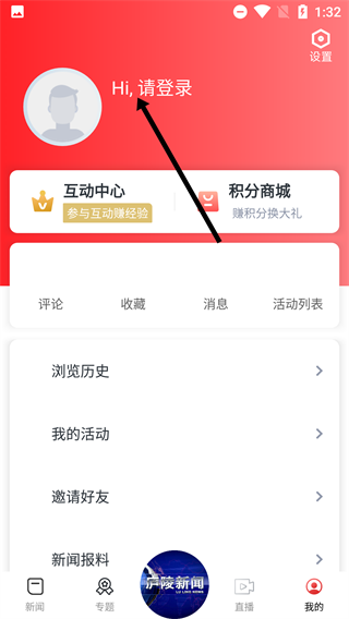 进入对应的页面后,能看到【HI,-请登录】的提示,接着去参与【互动中心】里的【参与互动赚经验】活动。