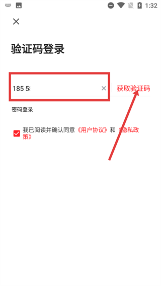 进入登录界面后,选择【验证码登录】选项,在对应的输入框中填写手机号或账号,接着点击【获取验证码】按钮,此时需要勾选同意【用户协议】和【隐私政策】才能继续后续操作。