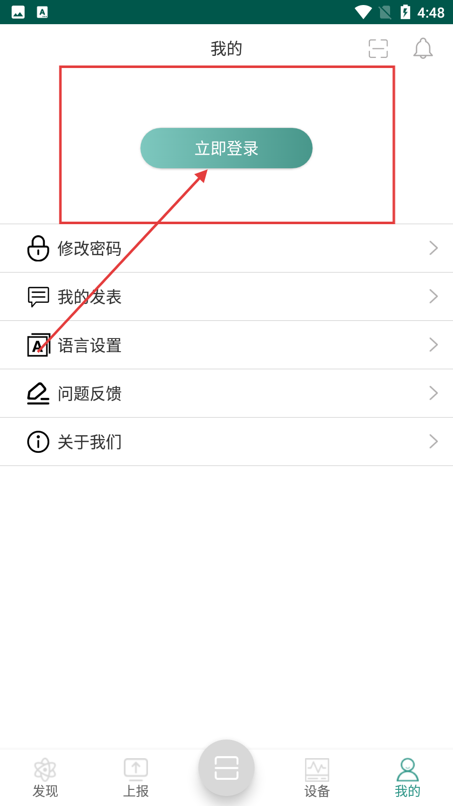 2、在个人页面中,找到并点击【立即登录】按钮,即可进入登录界面。