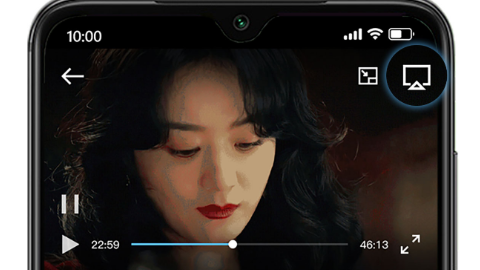 2、在应用的播放页面,点击右上角的“投屏”按钮,就能把画面投射到电视上。