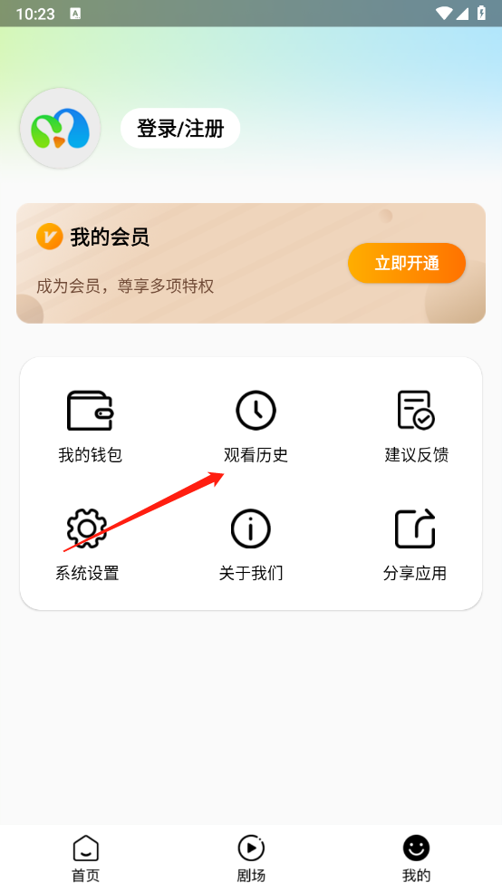 2、点击“观看历史”。
