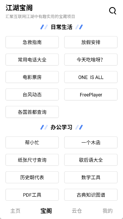 4. 纯净界面:应用界面简洁清爽,没有广告干扰,同时配备了丰富多样的工具,覆盖图片处理、娱乐资源等诸多领域。