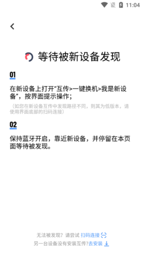 2、数据发送设备选择“我是旧手机”——数据接收设备选择“我是新手机”——选择对应手机品牌——等待识别完成,或通过扫描界面二维码进行连接——点击同意