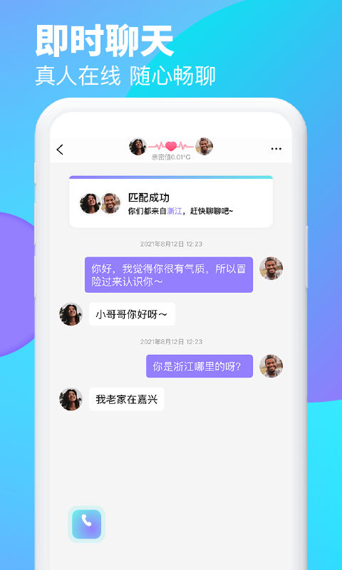 4.帮我们快速找到有缘人,实时在线与真人进行近距离沟通。