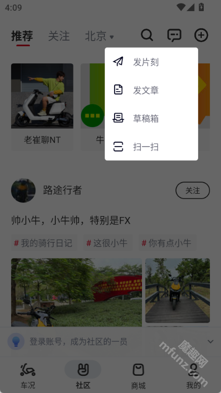 2. 小牛电动还具备社区功能,用户能够在此交流经验、分享照片、参与活动等。