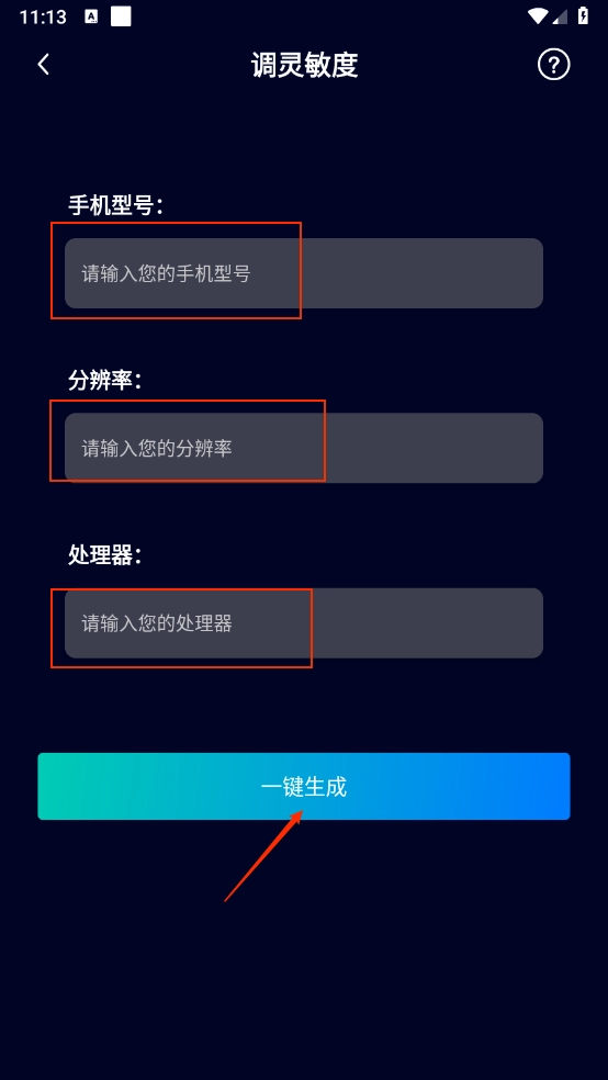 3、最后填写手机型号、分辨率和处理器信息,点击“一键生成”按钮就可以了。