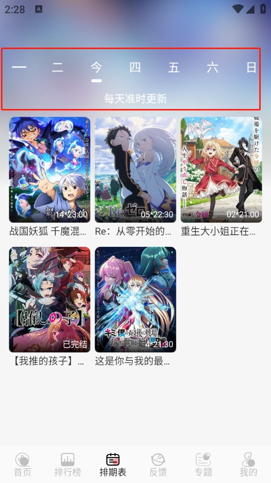 3、排期表主要是提供每天的动漫更新情况。