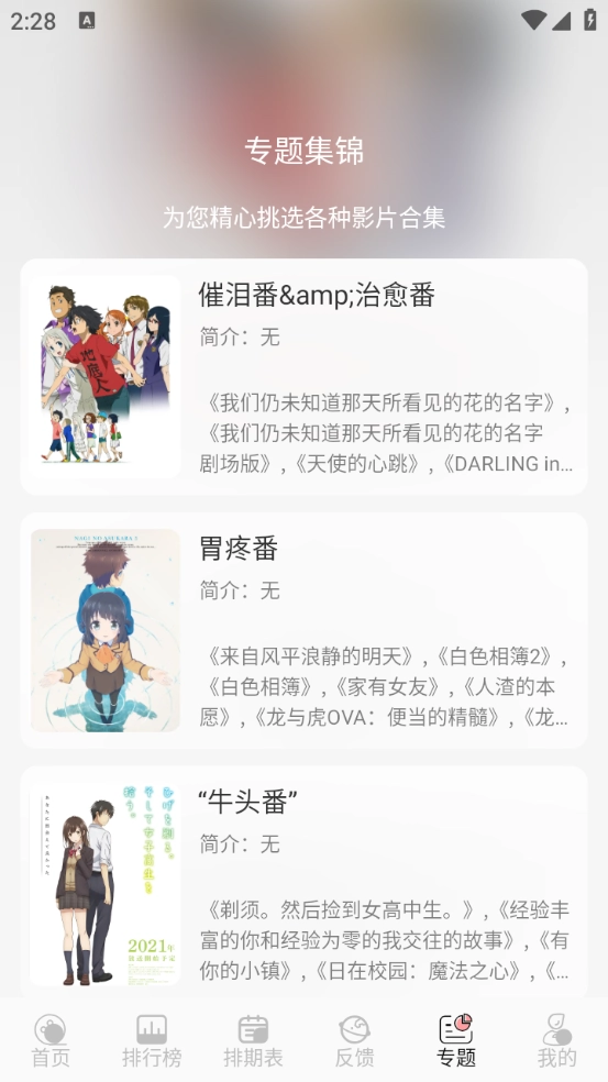 4、专题页面将动漫进行整合归类。