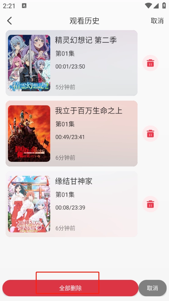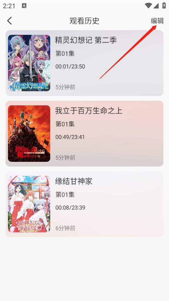 可以查看所有的观看记录,点击右上角的“编辑”按钮。
