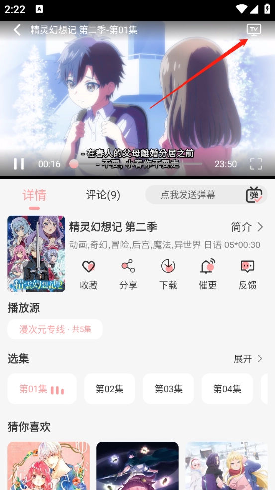 1、任意打开一部动漫,点击右上角的“TV”。