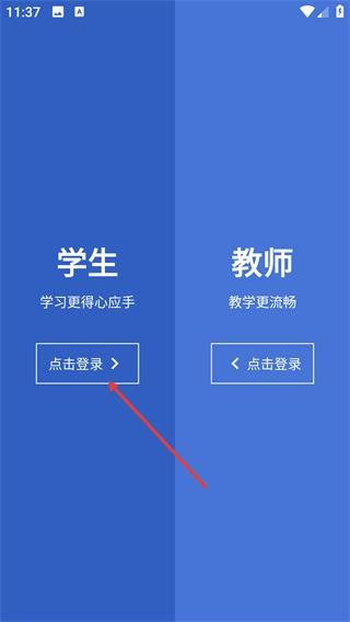 1、选择对应【学生】身份的【点击登录】按钮,进入登录页面,为账号验证做准备。