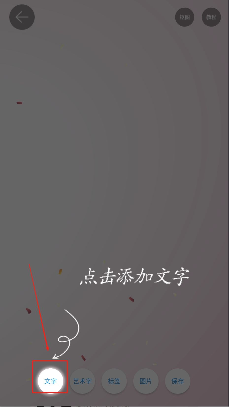 1、点击文字按钮添加文案,长按并拖动可调整字体的大小与颜色。